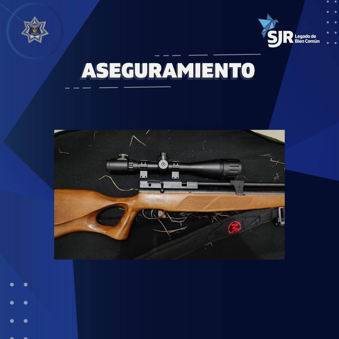 Durante un recorrido de seguridad y vigilancia en la colonia Nuevo Espíritu Santo, elementos de la Policía Municipal observaron a un hombre que portaba en la mano un objeto con apariencia de rifle, motivo por el cual se procedió a realizarle una inspección preventiva.
