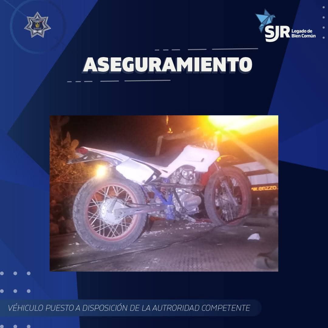 Como resultado de un recorrido de seguridad en la comunidad de San Sebastián de las Barrancas, elementos de esta institución visualizaron a un masculino a bordo de una motocicleta, quien se encontraba infringiendo el Reglamento de Tránsito Municipal. Por este motivo, se le marcó el alto y se realizó la inspección preventiva correspondiente.