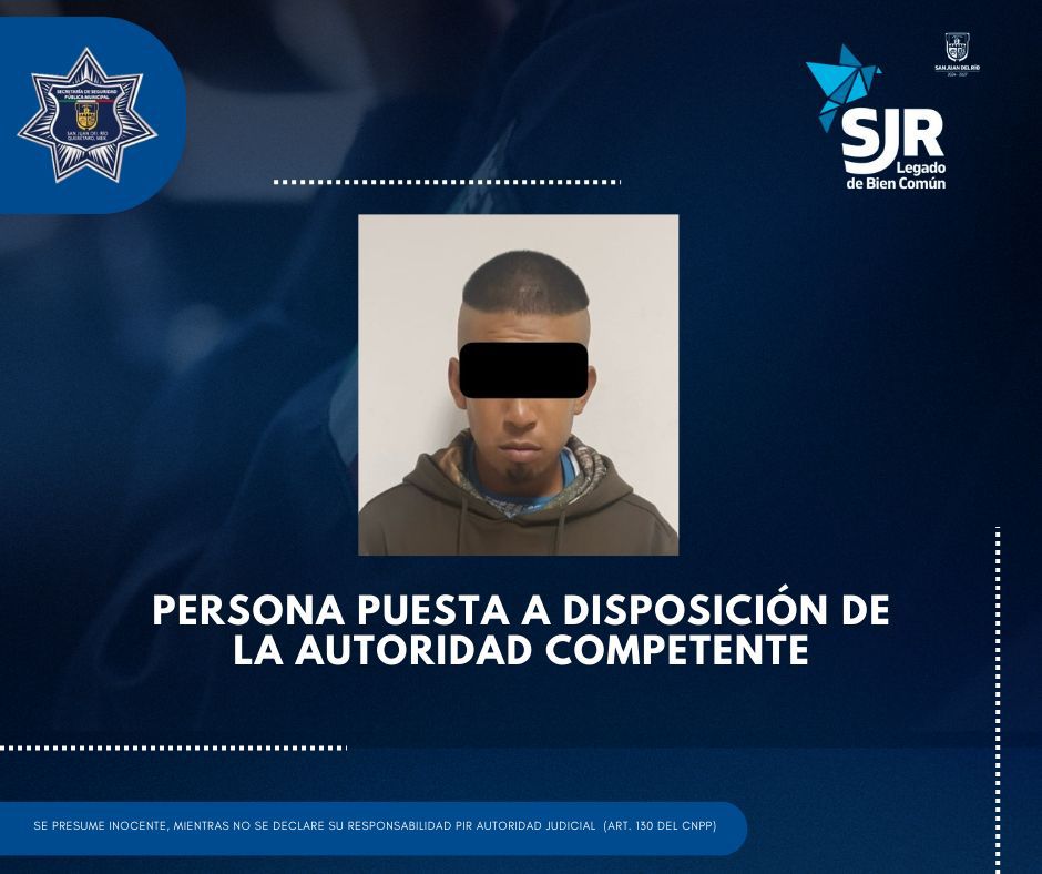 Detienen a sujeto en posesión de posibles sustancias tóxicas en operativo de vigilancia en SJR.