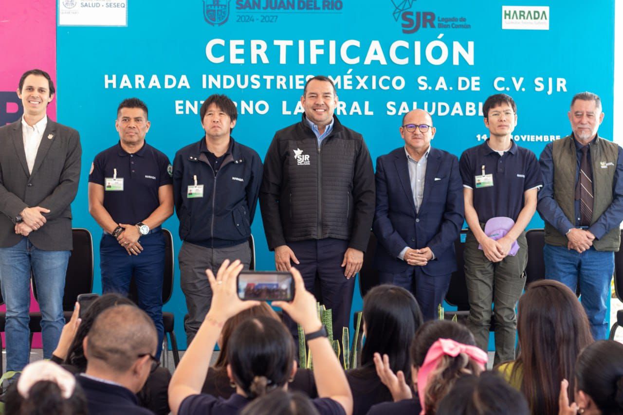 Las empresas del municipio ponen el ejemplo en la construcción de entornos saludables, afirmó el presidente municipal de San Juan del Río, Roberto Cabrera Valencia, durante la entrega del certificado a Harada Industries México S.A. de C.V. como “Entorno Laboral Saludable y Espacio 100% Libre de Humo de Tabaco y Emisiones”.