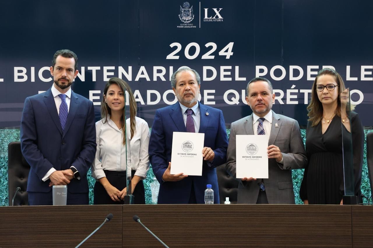 En Sesión Solemne de Pleno de la LX Legislatura del estado de Querétaro, el presidente de la Mesa Directiva, diputado Luis Gerardo Ángeles Herrera, recibió el Octavo Informe Anual de Actividades del titular de la Fiscalía General del estado de Querétaro, Alejandro Echeverría Cornejo, que comprende los resultados del periodo de marzo 2023 a febrero 2024.