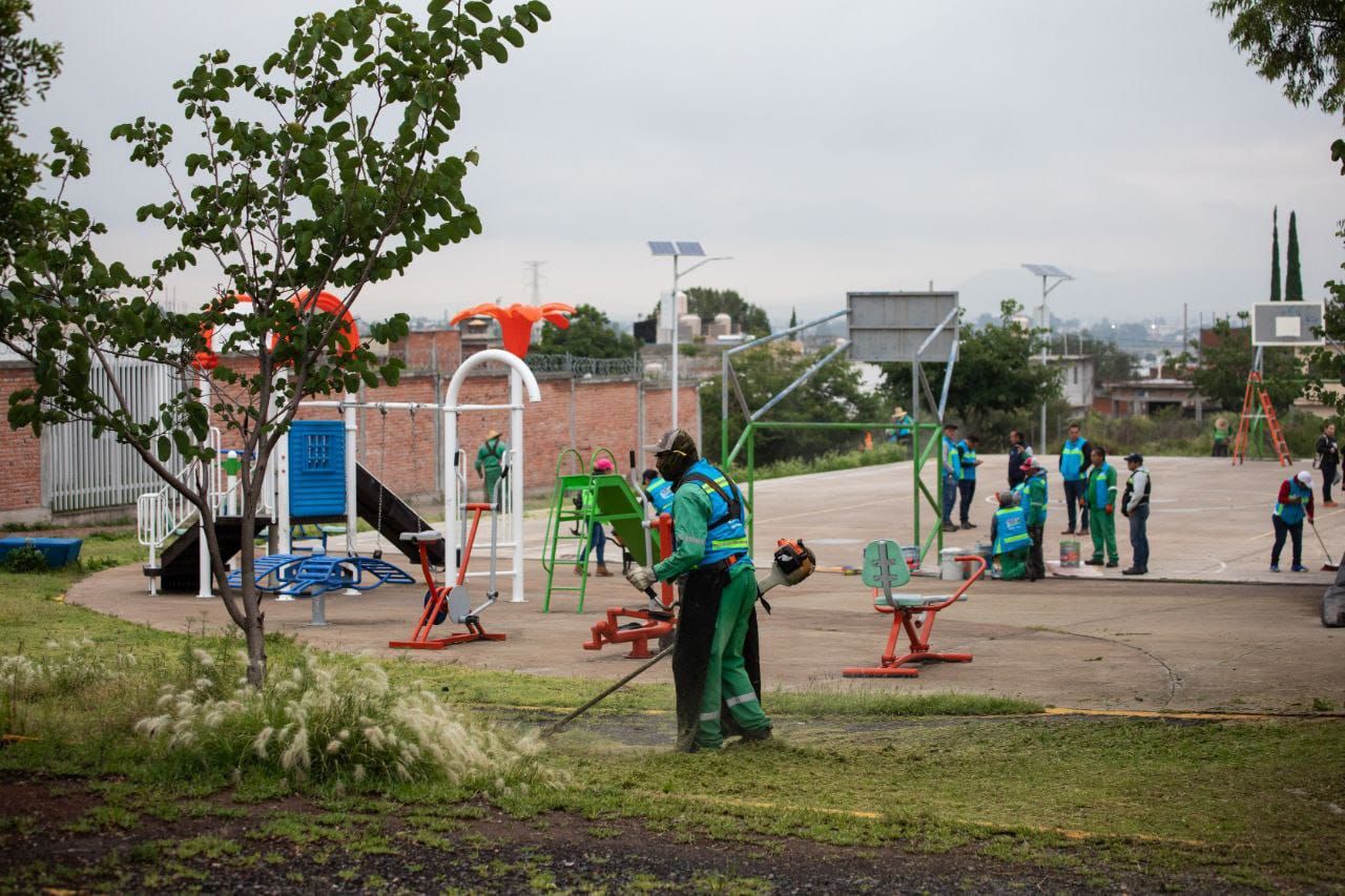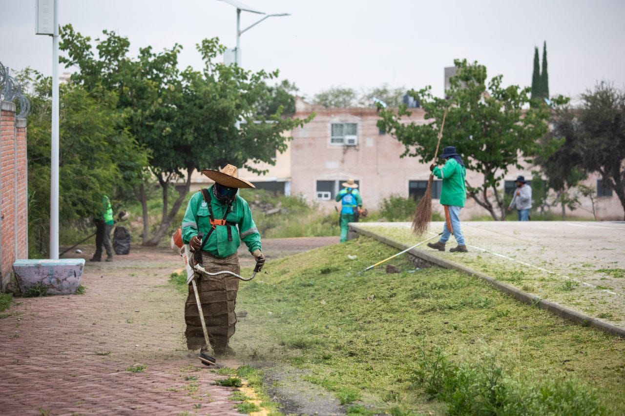 Durante la jornada el personal de la dependencia llevó a cabo acciones como deshierbe de áreas verdes, aplicación de pintura, labores de poda, mantenimiento de alumbrado público, barrido fino, entre otras acciones, que benefician a la población con una mejor calidad de vida, así como la construcción de un Legado de Bien Común, con una Mejor Ciudad y una Mejor Sociedad.
