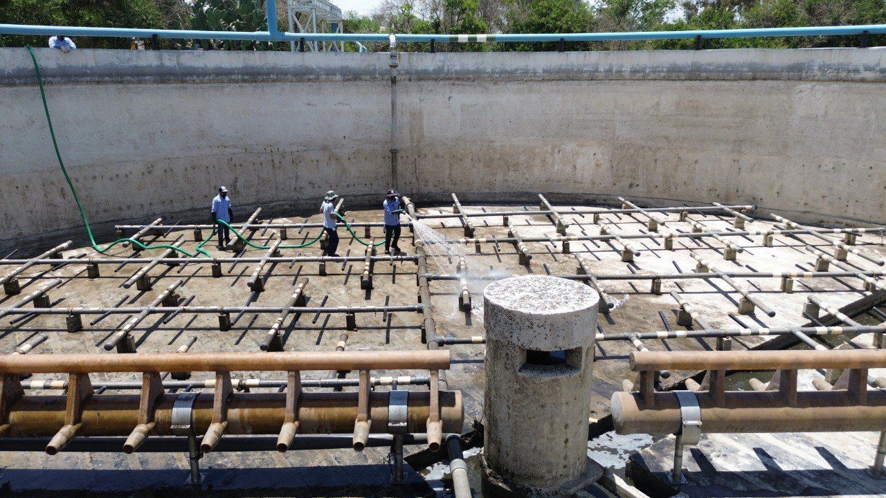 Entre los trabajos que se realizan se encuentran la aplicación de pintura en las instalaciones, el desarenado en todos los cárcamos, el cambio de mangas en difusores de aireación, el retiro de arena acumulada en el reactor, la reparación de fugas de aire en el sistema de reactor, así como la limpieza del cárcamo de agua tratada.