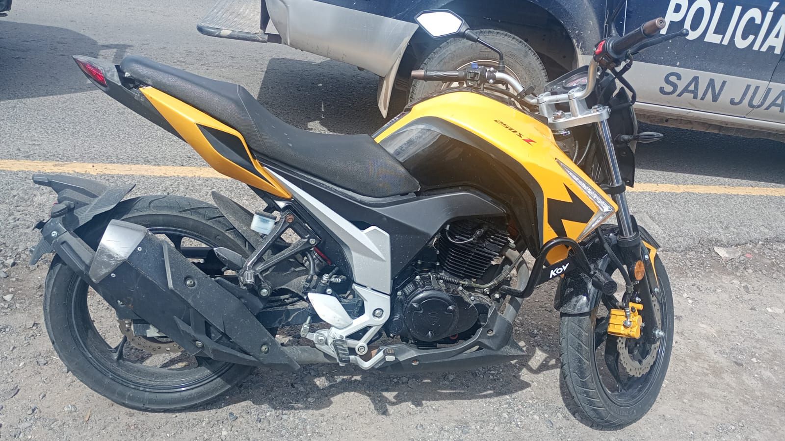 La persona, quien dijo llamarse Juan “N.”, presentó a los oficiales un documento apócrifo que acreditaba la propiedad de la motocicleta, por lo que fue detenido por el delito de robo equiparado de vehículo y puesto a disposición de la Fiscalía General del Estado con sede en San Juan del Río, para que se determine su situación jurídica.
