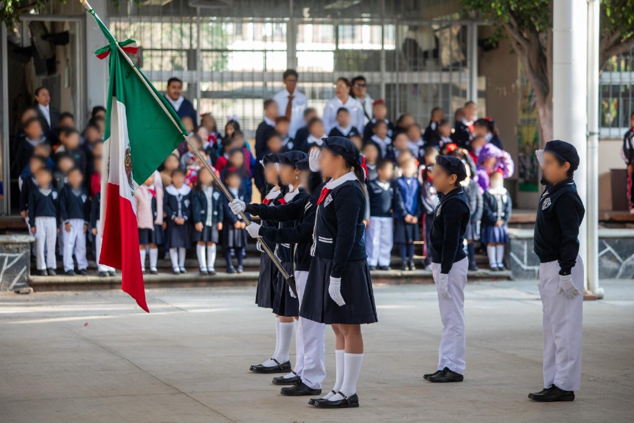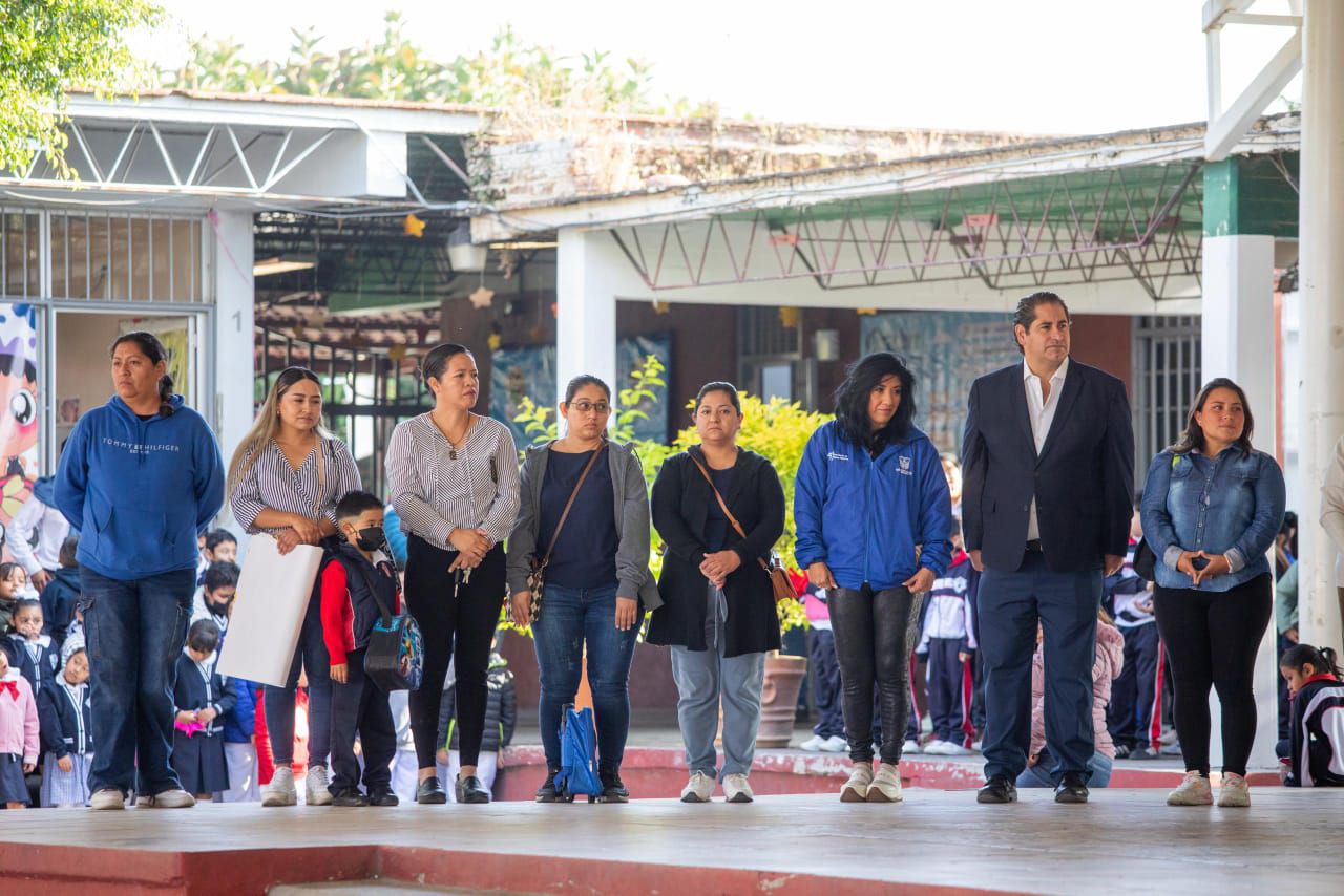 Así lo dijo el director de la Junta de Agua Potable y Alcantarillado Municipal (JAPAM), Toño Pérez Cabrera, al encabezar, en representación del alcalde de San Juan del Río, Roberto Cabrera Valencia, la ceremonia de honores a la Bandera en la escuela primaria Sor Juana Inés de la Cruz, ubicada en la zona Centro del municipio, donde estuvo acompañado de la secretaria de Obras Públicas y Desarrollo Urbano, Edith Álvarez Flores; el director de la primaria Sor Juana Inés de la Cruz, Miguel Herrera Ríos; personal administrativo, de apoyo, y padres de familia.