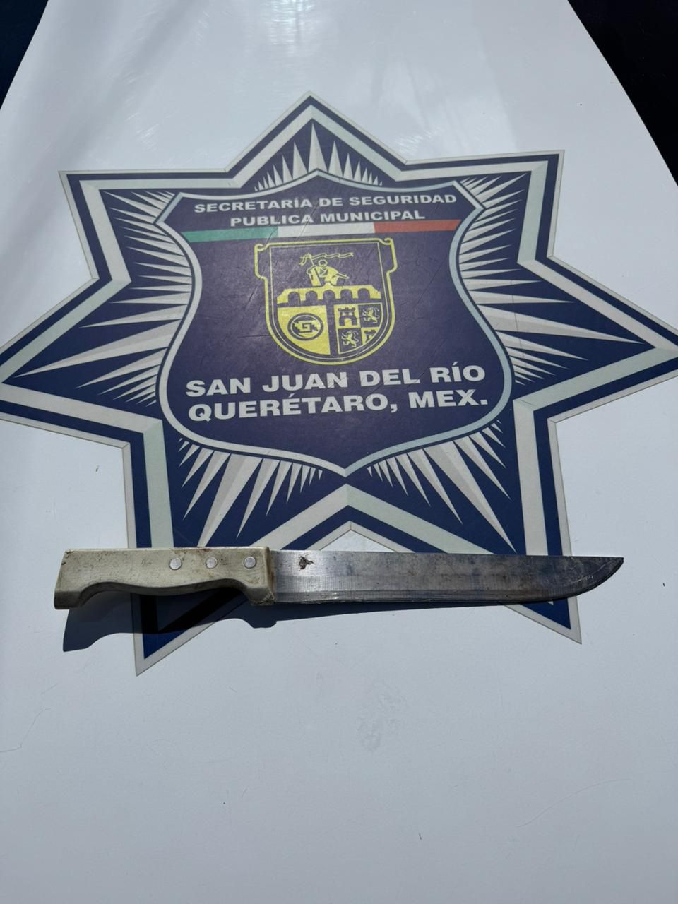 Los policías municipales, solicitaron al masculino la revisión a su persona, como lo establece el protocolo de seguridad, quien portaba dos mochilas, un tipo escolar y, la otra, una mariconera; en la primera no se le encontró nada, mientras que, en la segunda, se le identificó un arma blanca (cuchillo), sin localizar el arma que había reportado la denunciante.