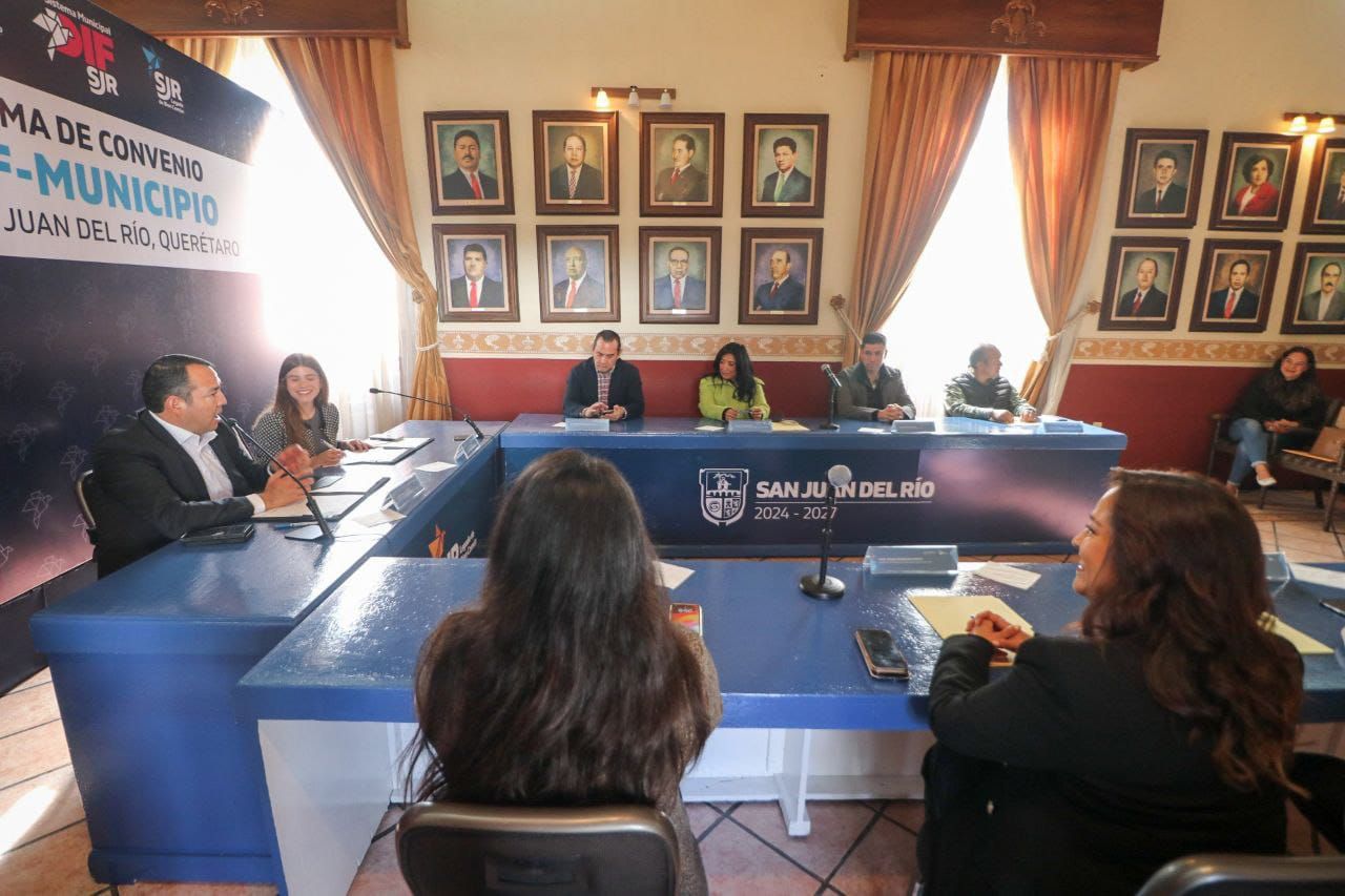 En beneficio de la sociedad sanjuanense, del desarrollo de las personas y de las familias, el Sistema Municipal para el Desarrollo Integral de la Familia de San Juan del Río (DIF) y la Presidencia Municipal, firmaron un convenio, con la finalidad de establecer lazos de colaboración entre las diferentes Secretarías de la Administración Municipal y el DIF en la ejecución de los trabajos, acciones, actividades y programas que ejecute este organismo.