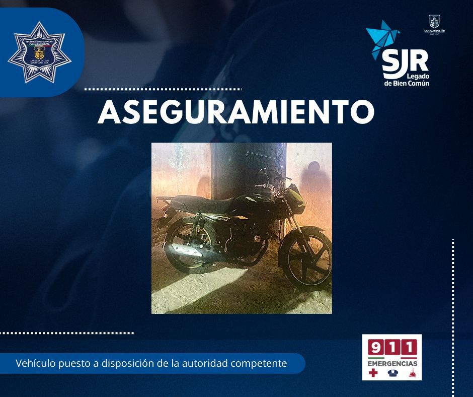 La Secretaría de Seguridad Pública Municipal de San Juan del Río (SSPM-SJR), recuperó una motocicleta robada, localizada en el andador Victoria del Barrio de La Cruz, tras el oportuno reporte de un ciudadano.