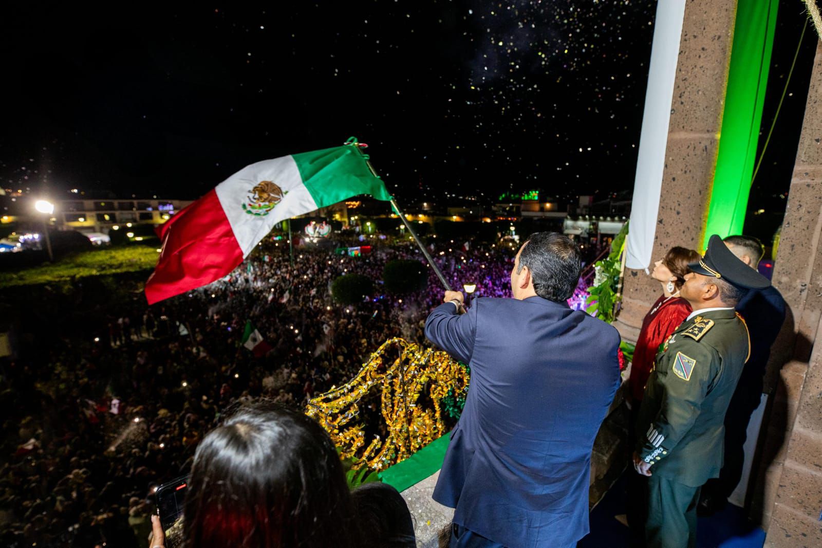 Durante la ceremonia, Roberto Cabrera vitoreó a las y los Héroes que participaron en el movimiento independentista y que dieron patria y libertad a México, e hizo sonar las campanas del Templo, en medio de aplausos y gritos de ¡Viva México! por parte de las y los ciudadanos que disfrutaron de un ambiente familiar.
