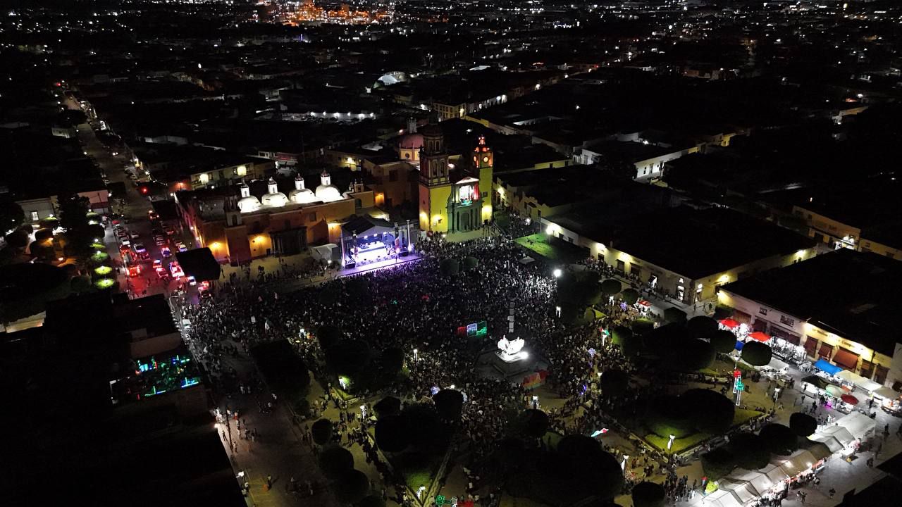 Tras el Grito de Independencia, la zona Centro del municipio de San Juan del Río se iluminó con un espectáculo pirotécnico que fue amenizado con música. A este le siguió la presentación de “Yony y sus Elegidos” en la Plaza Independencia, quienes fueron bien recibidos por las y los sanjuanenses que bailaron y entonaron las canciones de la mencionada agrupación.