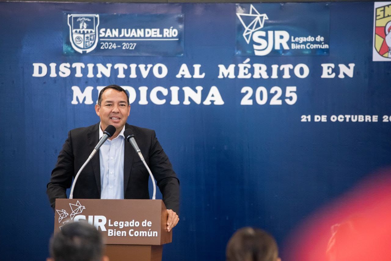 Por su ejemplar desempeño, destacada trayectoria, ética profesional, vocación de servicio y, de manera especial, por su contribución a la salud de las familias sanjuanenses, el presidente municipal de San Juan del Río, Roberto Cabrera Valencia, entregó el “Distintivo al Mérito en Medicina 2025” a ocho médicas y siete médicos de instituciones de salud públicas y privadas.