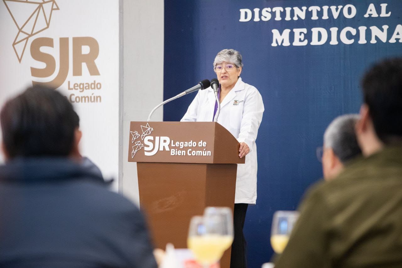La coordinadora de Salud Integral en el municipio de San Juan del Río, Luz Virginia Cortés Osornio, recordó que la entrega del distintivo se da en el marco del Día de la Médica y el Médico, que se conmemora el 23 de octubre de cada año.