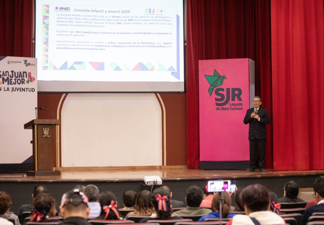 San Juan del Río cree en la participación, en la dignidad de las personas y en el Legado de Bien Común que guía y une los esfuerzos de la sociedad y el gobierno, sostuvo, en representación del presidente municipal sanjuanense, Roberto Cabrera Valencia, la regidora síndica del Ayuntamiento de San Juan del Río, Rosalba Ruiz Ramos, durante la presentación de los resultados de la Décima Consulta Infantil y Juvenil 2024.