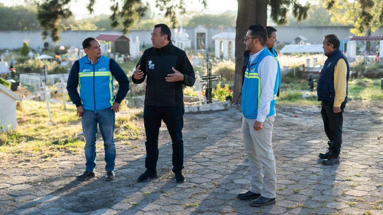 Con la finalidad de fortalecer la imagen de los panteones municipales y ofrecer un espacio digno a las familias que durante las festividades por el Día de Muertos visitan los cementerios, el presidente municipal de San Juan del Río, Roberto Cabrera Valencia, realizó un recorrido para supervisar los trabajos que realiza el personal de la Secretaría de Servicios Públicos en los panteones 1, 2 y 3.